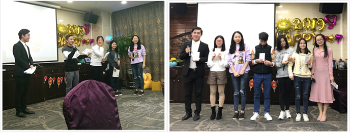 由游總迎新晚會前的致詞宣告開始,我們的團隊成員爭先展示自己,為大家獻上了精彩紛呈的節(jié)目。采購部的Liqi妹妹用德語朗誦了一首愛情詩歌,支持部和推廣部的小伙伴們則來了個舞蹈串燒,銷售部的大合唱激情澎湃。晚會上大家還一起玩游戲,搶椅子,吹氣球,玩的不亦樂乎。之后的抽獎環(huán)節(jié),大家更是興致高漲,到達晚會高潮。再看看頒獎環(huán)節(jié),這是對上一年表現(xiàn)優(yōu)秀的個人予以表彰,對他們的工作予以肯定,我們的每一個成員都是公司重要的一份子。最后則是團隊晚宴,酒足飯飽歡聲笑語中,2019迎新晚會圓滿結(jié)束。
